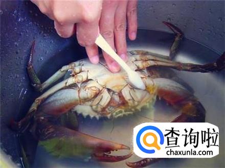 盆里倒上半盆清水,再倒入一杯白酒,把螃蟹放在里面浸泡最少两个小时,这样能够起到杀菌效果。