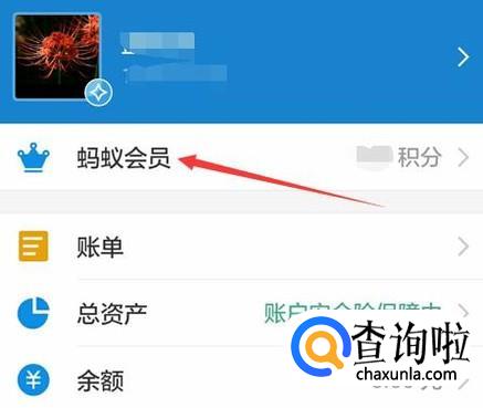 在我的界面里找到带有小王冠标志的蚂蚁会员那一栏,可以看到自己现有的积分,然后点击蚂蚁会员进入会员兑换页面