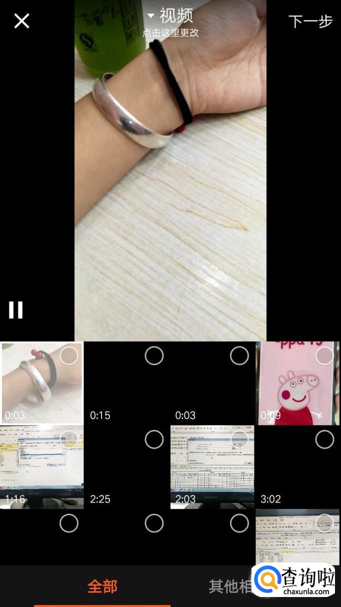 首先点击首页底部中间的按钮,然后就会看到,左上方有个剪辑按钮,点击进入,接着选择要添加的视频,最后点击下一步。