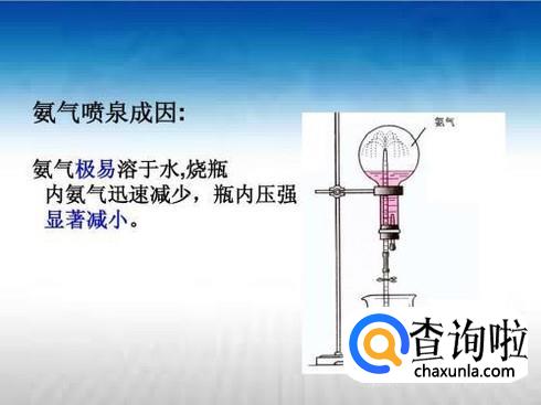 除此之外氨气溶于水之后溶液呈碱性,酚酞溶液会变红,因此更容易观察。