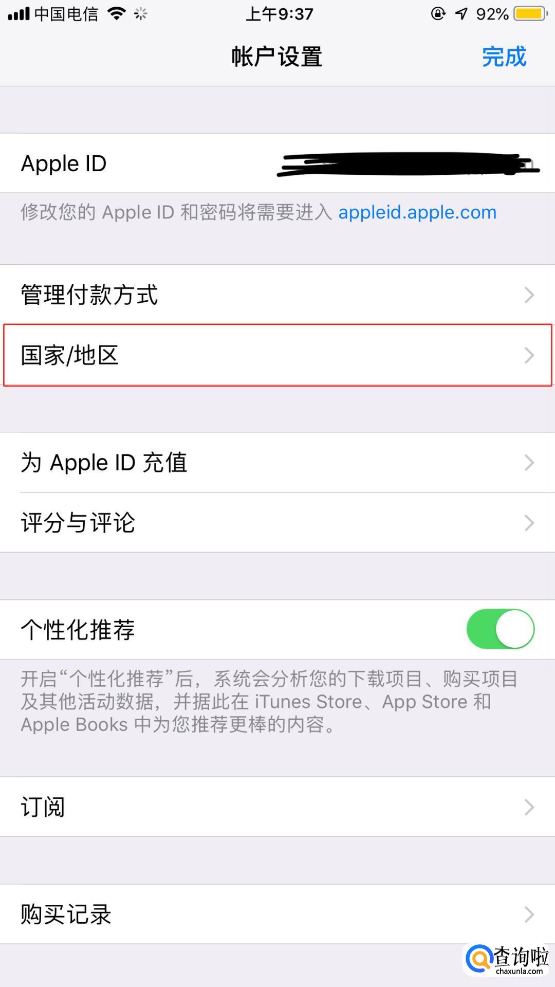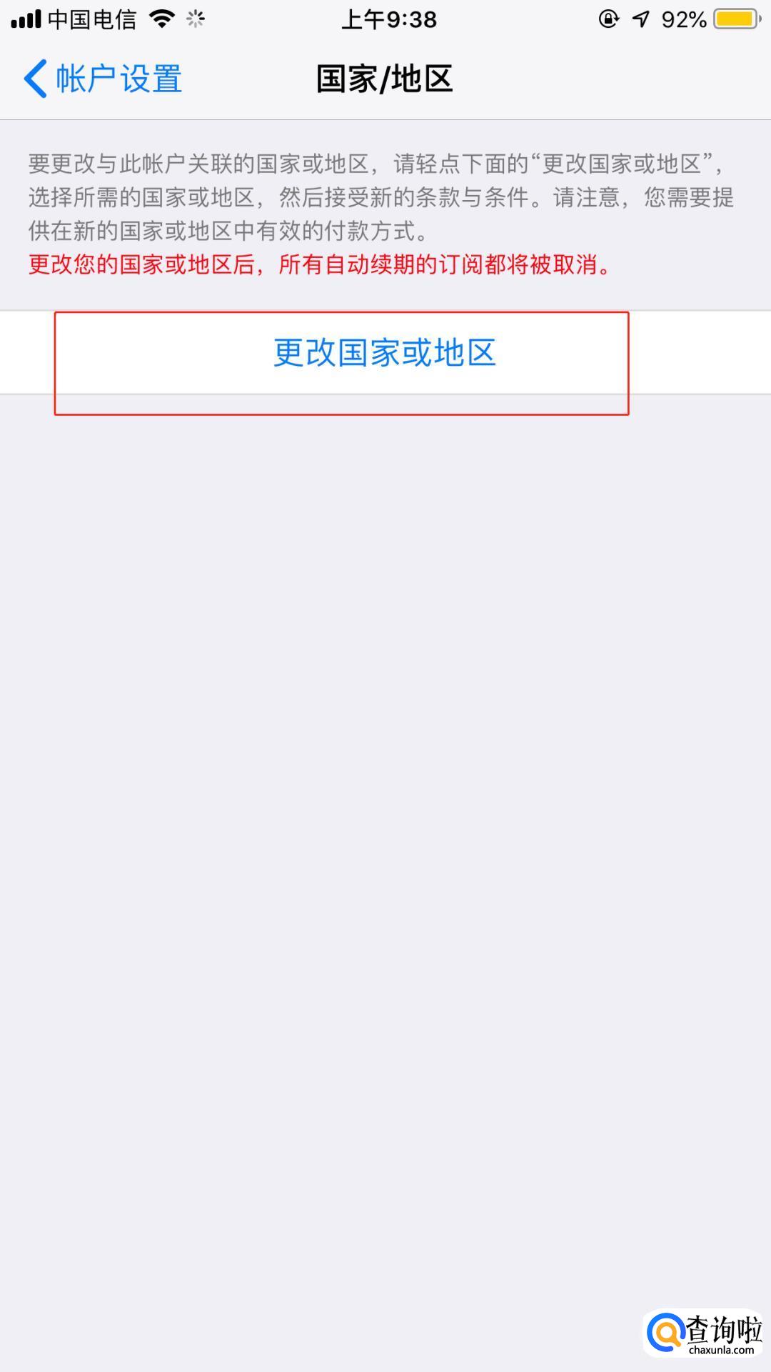 在“国家/地区”选项中,选择下方的“更改国家或地区”。