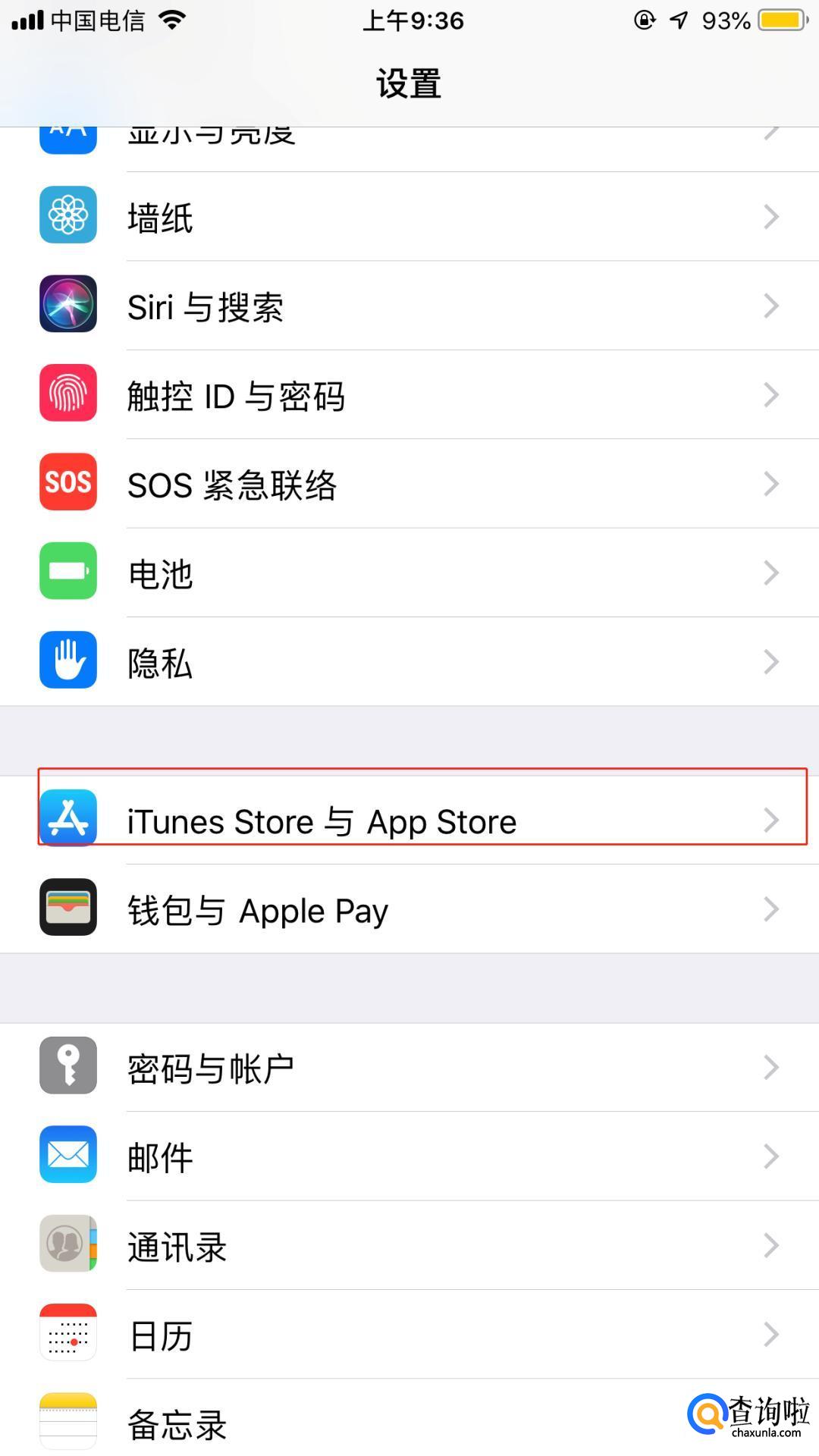 打开苹果手机中的“设置”,点击设置中的“iTunes Store与App Store”选项。