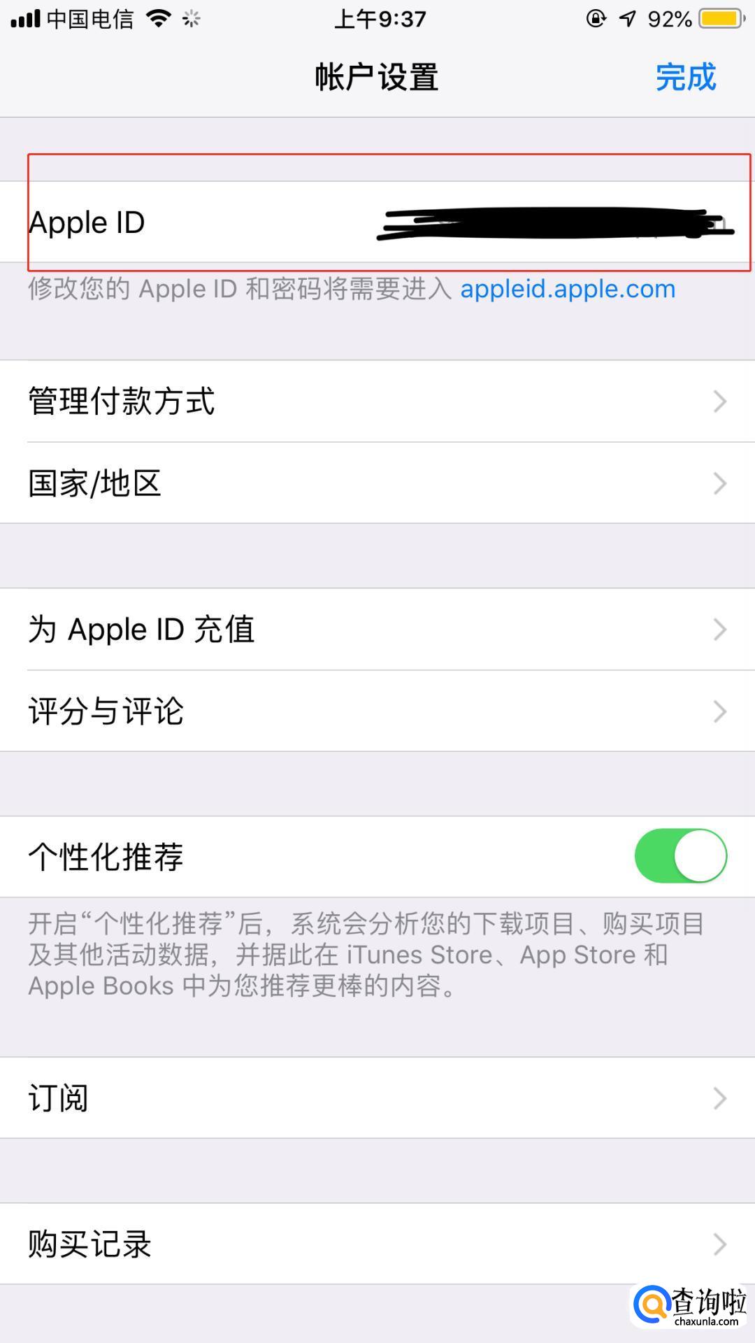 在“账户设置”选项中选择“Apple ID”,如下图所示。