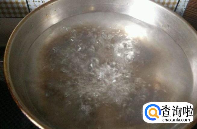 锅内加入清水,然后大火烧沸。水的量一定要大,足以埋没所有的猫豆为佳。