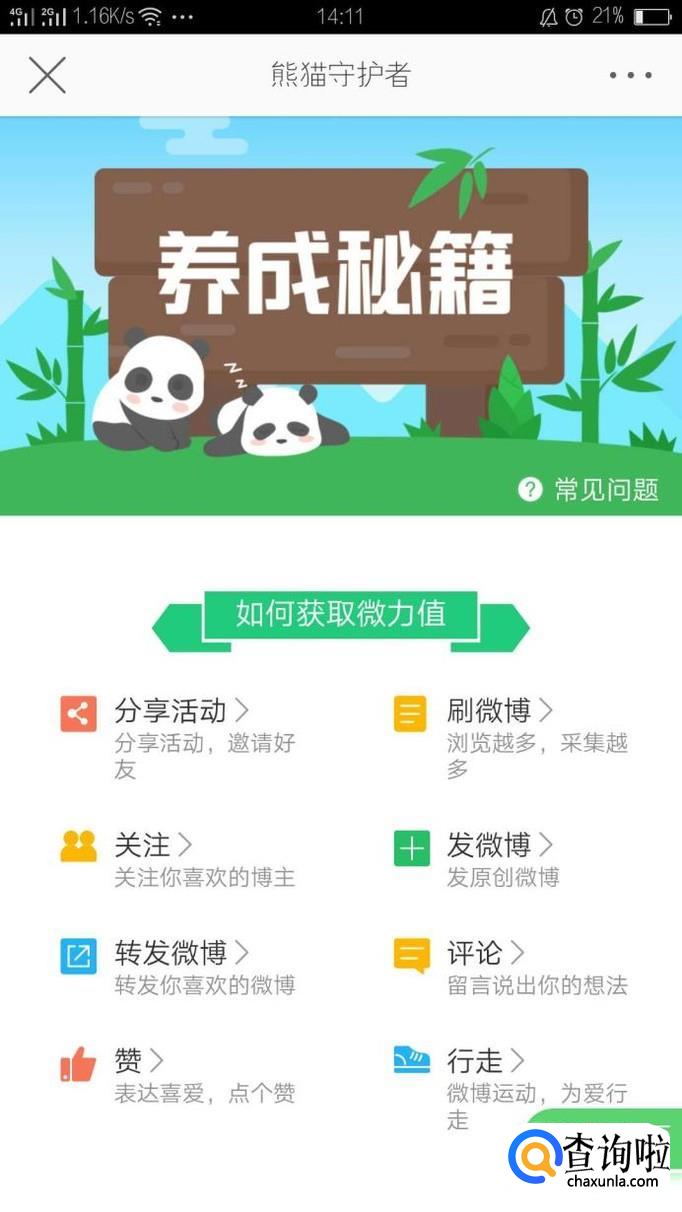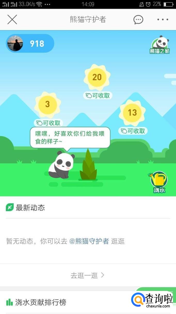 这样就进入我们微博的熊猫守护者页面了,通过点击气泡,采集能量。