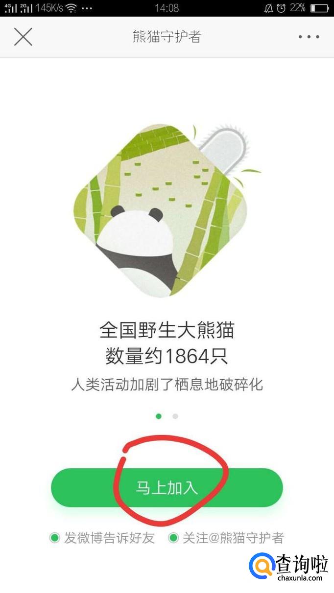 在这个页面内,我们就可以加入熊猫守护者了,点击“马上加入”按钮,如下图所示。