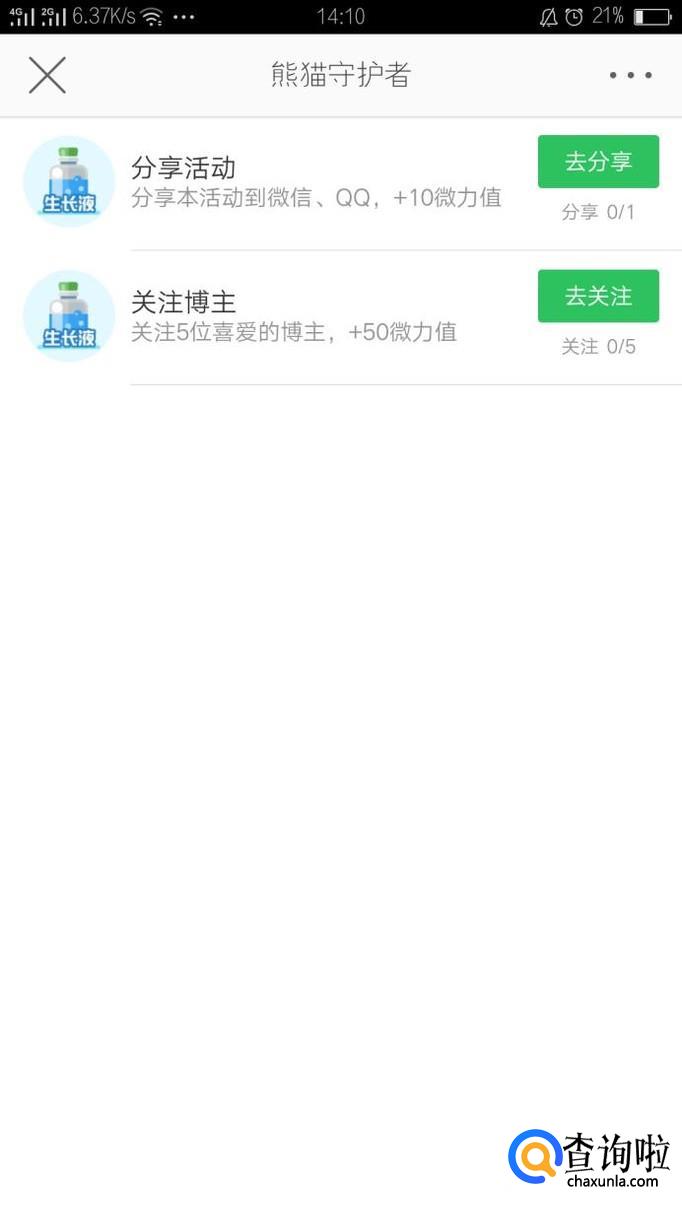 在熊猫守护页面中,找到每日道具任务,做完每日任务,都可以拿到想要的微力值。