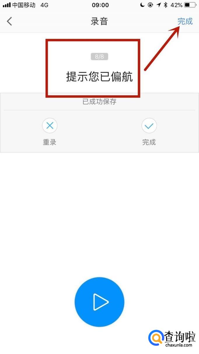 一共要说八句话,录制结束点击屏幕右上方的完成,如下图所示。