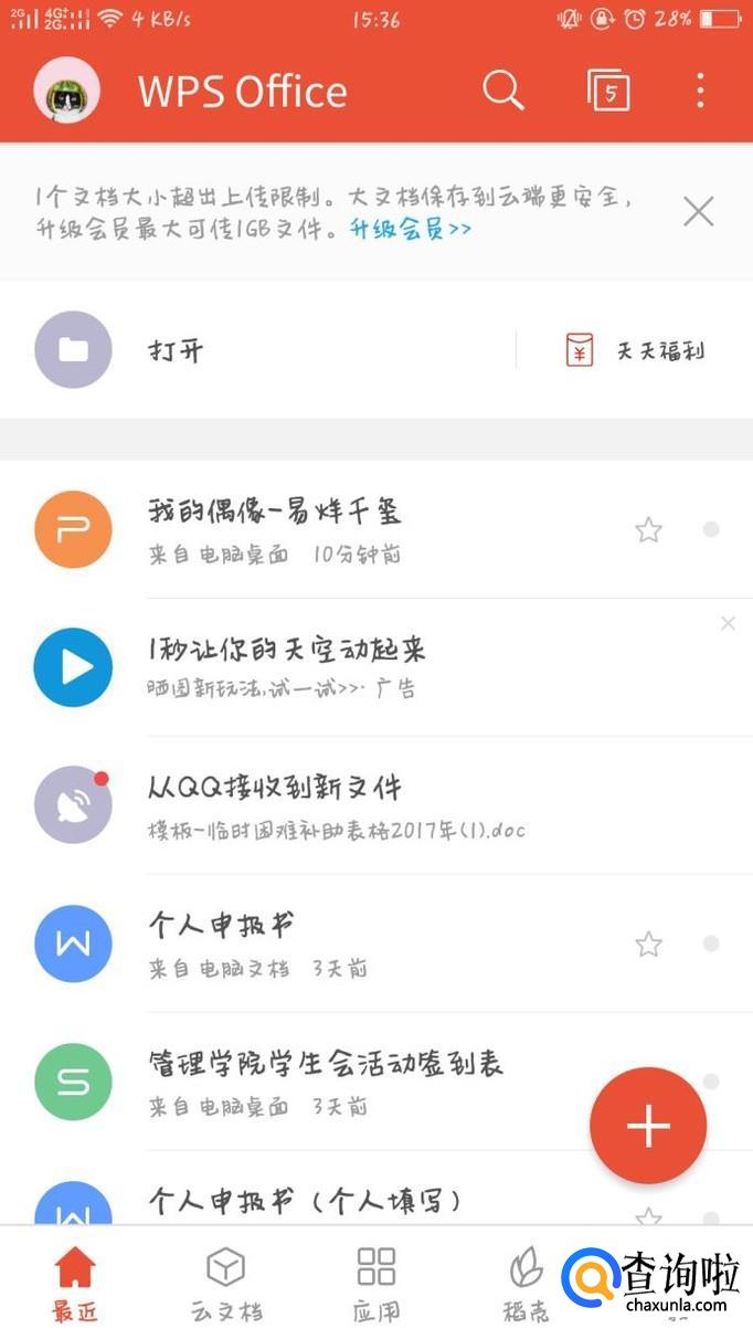首先打开手机版WPS软件,在首页选择想要改名的文件,点击文件旁边的小圆点即可。
