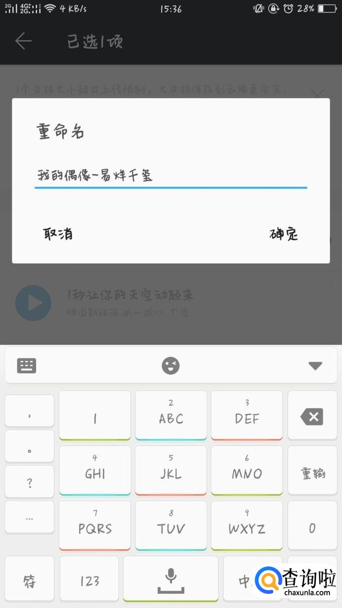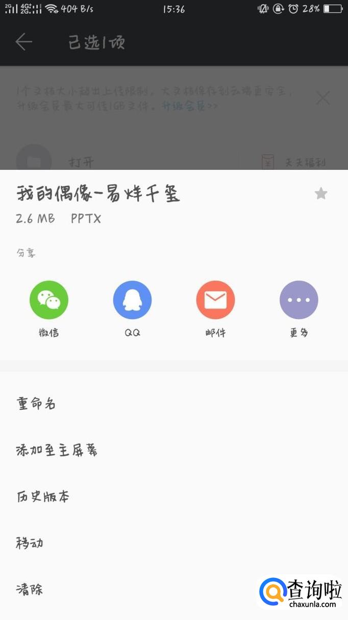 点击“更多”之后,会有相关页面弹出,在“分享”下方有“重命名”选项,点击即可。