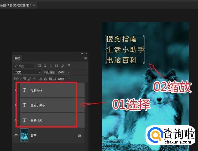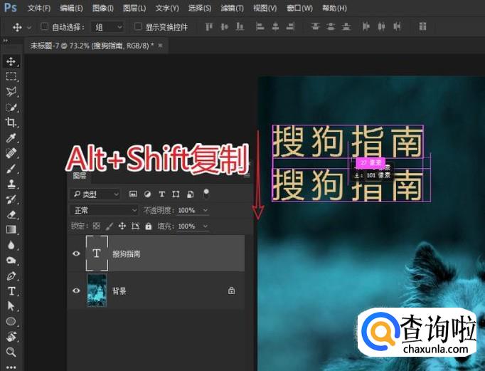使用移动工具,按下Alt+Shift键,拖拽画布上的文本快速的复制新的文字。