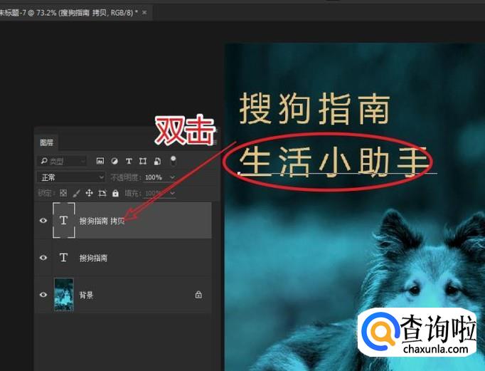 通过双击图层面板上的新复制的文字图层,将文本更改为二级标题。