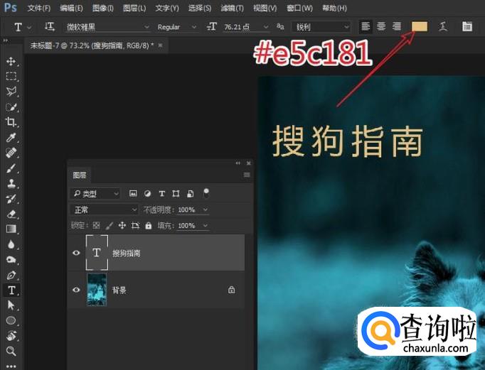 将文本的颜色设为:#e5c181(黄色),完成字体的设置。