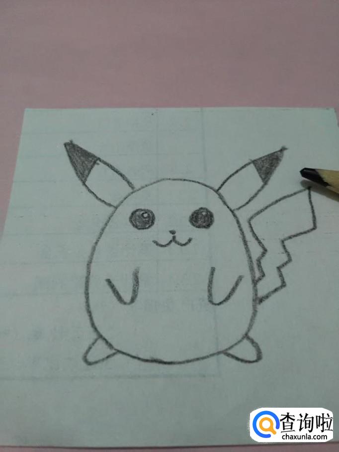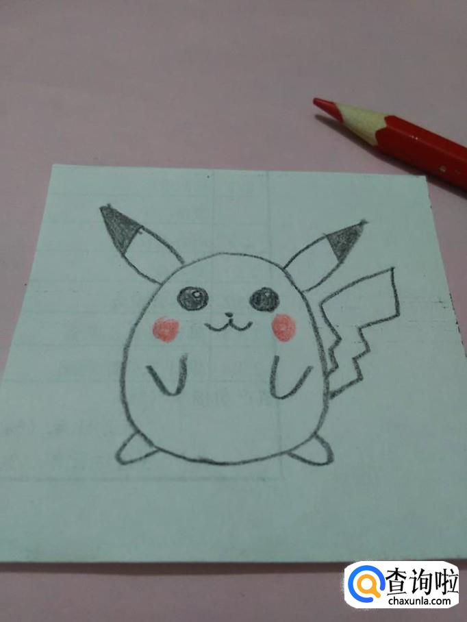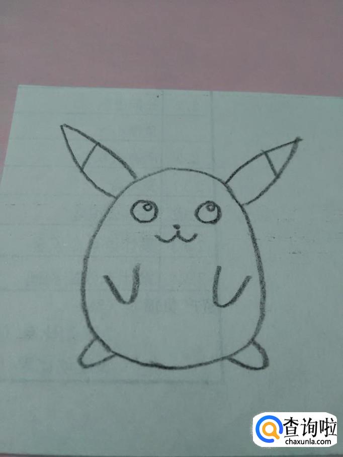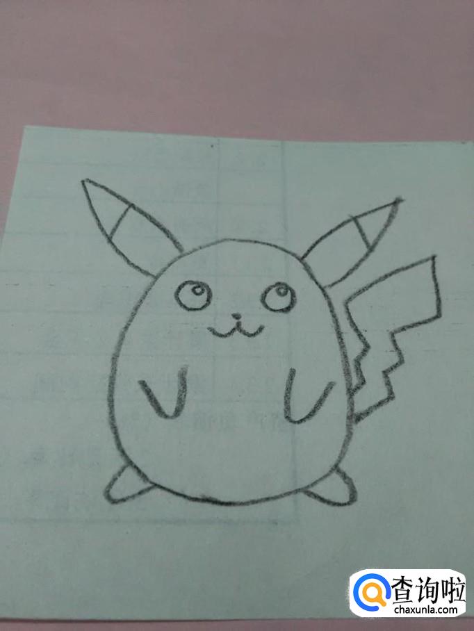 画皮卡丘,要画出长耳朵、圆身体、红脸蛋、短小的四肢和闪电形状的尾巴。下面就来画皮卡丘。