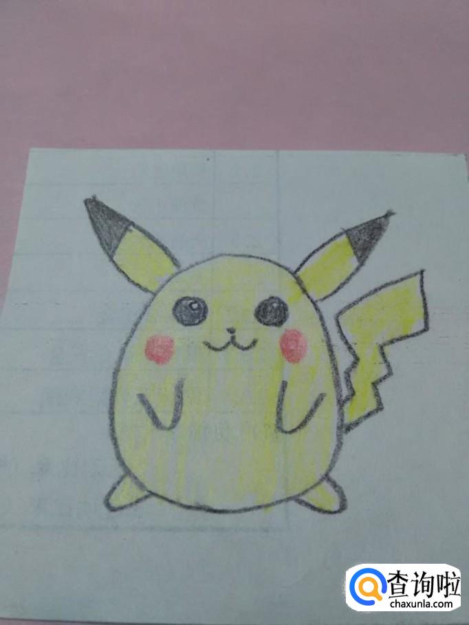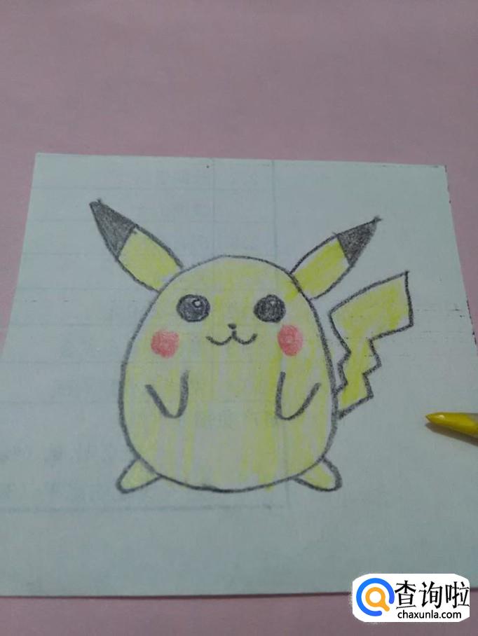 最后,将身体的其他部分涂成黄色,皮卡丘就画完了。