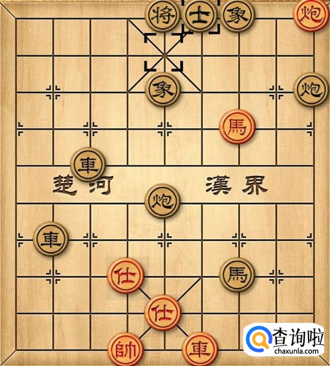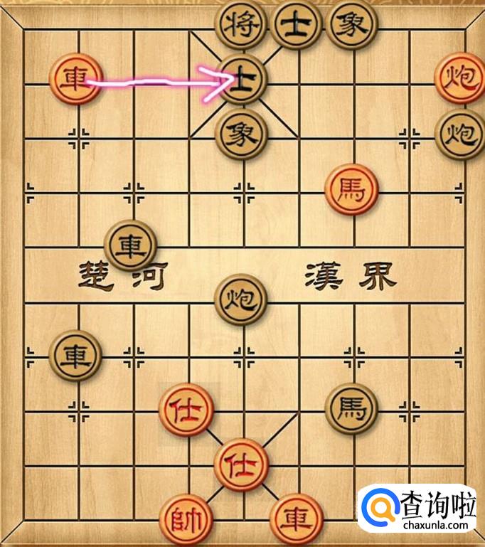 由于我方炮已搭好炮台,所以我方车无所畏惧,植入九宫之中,与黑将四目相对,车4进9,吃掉黑士,将军。