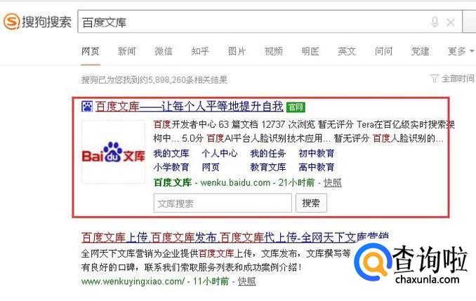 首先打开搜狗浏览器,搜索“百度文库”,进入官网。