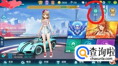 首先打开QQ飞车手游,点击右上角的“活动”,如图所示。