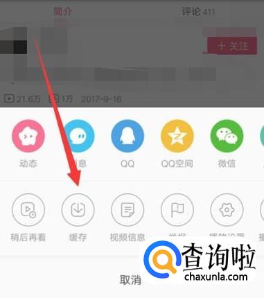 打开快捷菜单之后,选择“缓存”即可将视频下载下来。
