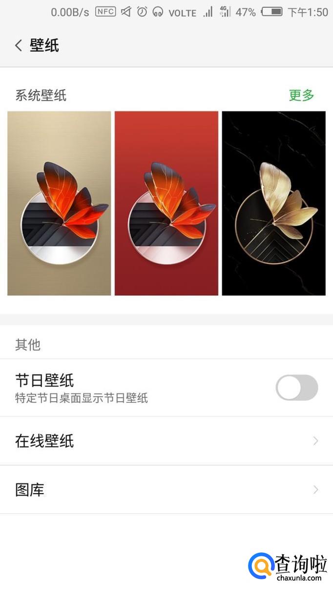 这样我们就可以设置壁纸了,我们可以使用系统自带的壁纸,也可以从图库中用照片做壁纸。