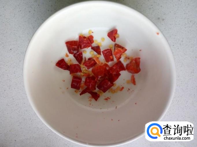 红干椒切成小段,切好葱,姜,蒜,备用。