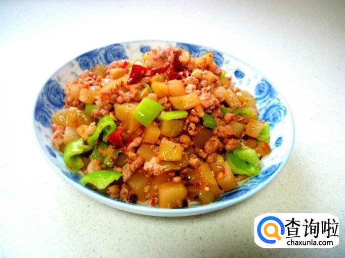 肉末 200克, 榨菜 250克,青尖椒 1个。
