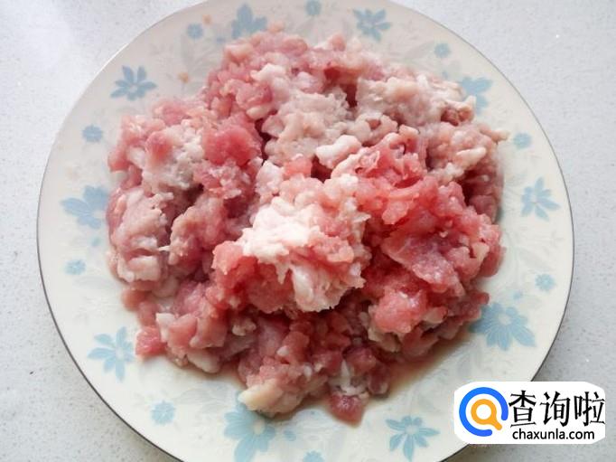 肉切碎末,买现成的肉馅也可以,我用的是现成的肉馅。