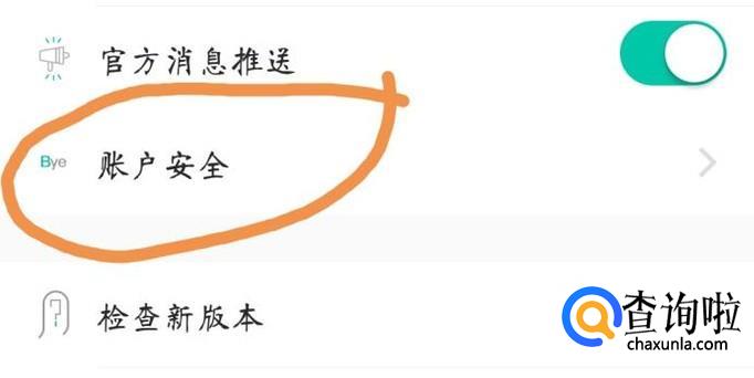 然后找到“账户安全”选项,点击进入