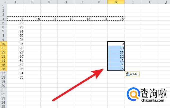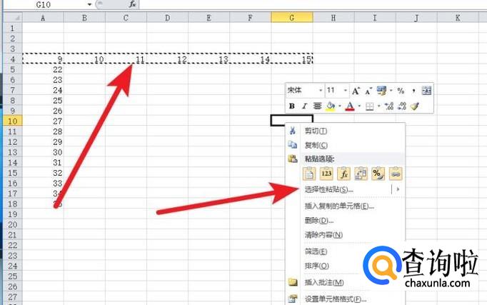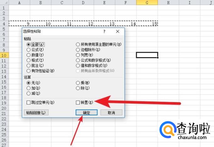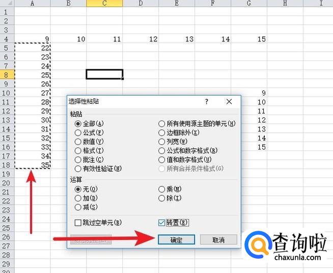 同样的步骤重复一边即可,如图选择竖列,选择性粘贴中勾选转置即可;