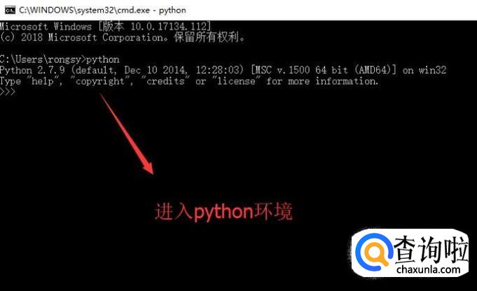 首先我们要打开CMD命令行,在CMD中输入python命令进入到python运行环境,如下图所示