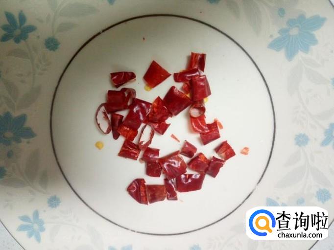 红干椒用水清洗干净,控干水分,切成小段。切好葱,姜,蒜,备用。