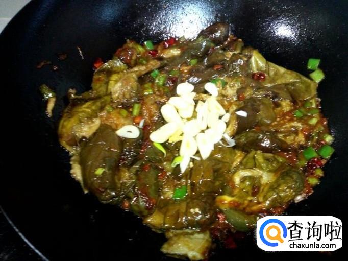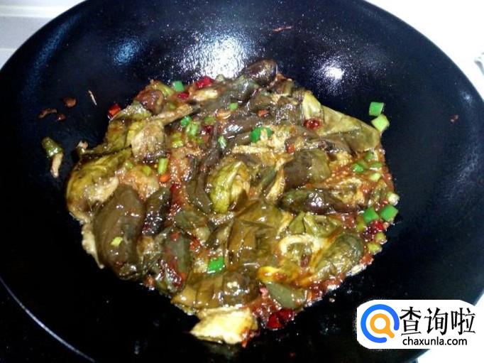 用铲刀把茄子铲开,略翻炒至茄子沾满豆酱汁即可。放入味精,放入蒜,关火出勺。