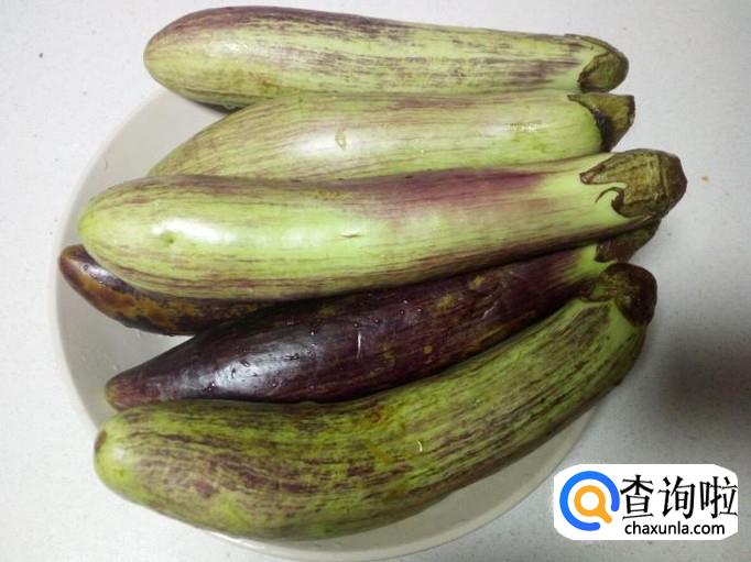 茄子去把(茄子蒂可去可留),清洗干净,控干水分。然后把茄子上锅蒸熟,大约蒸20~25分钟左右的时间,用筷子可以插透。