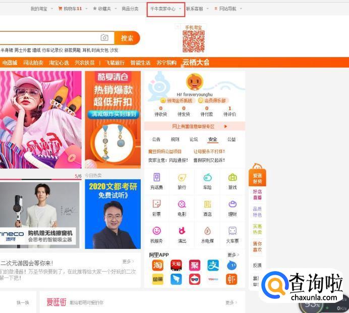 登陆账号后,点击‘千牛卖家中心’,进入卖家中心。