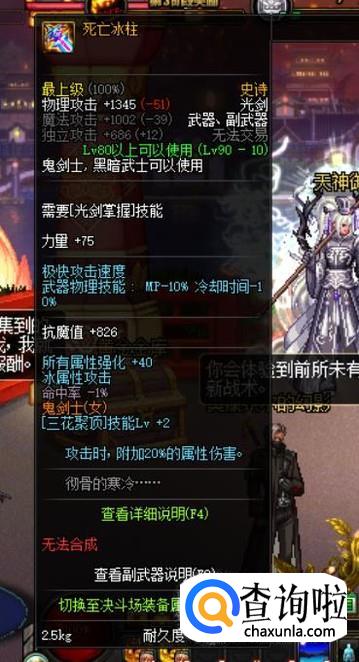 死亡冰柱的属性白字会被90级SS皮甲B套和天御套所稀释。