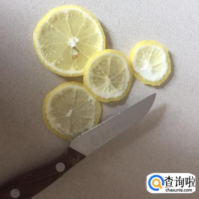 接着用刀把柠檬切成薄片,注意切得越薄越好。