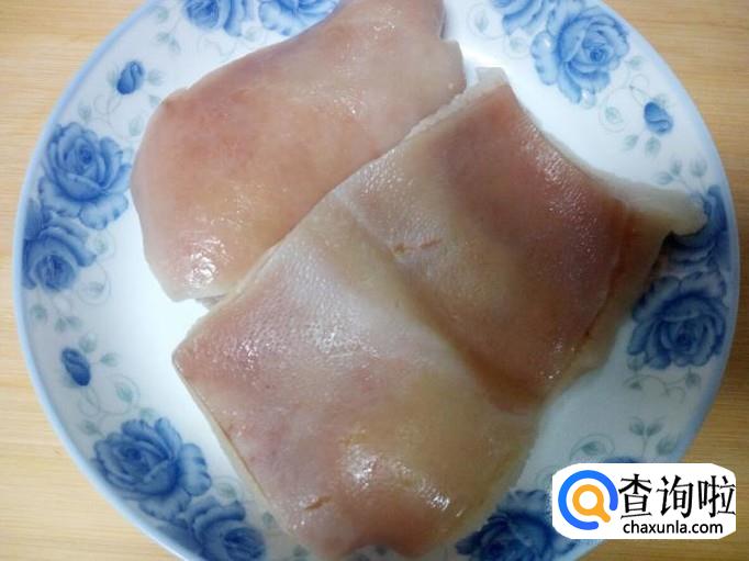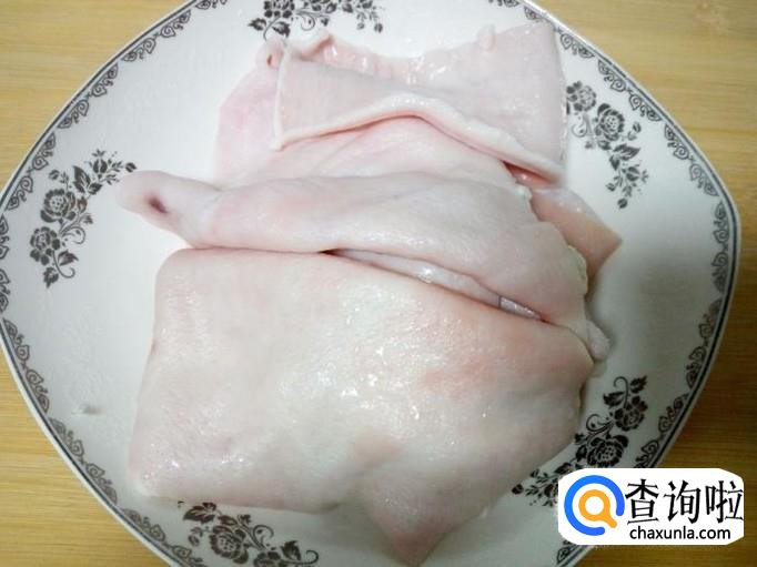 豇豆 200克,猪肉皮 150克。