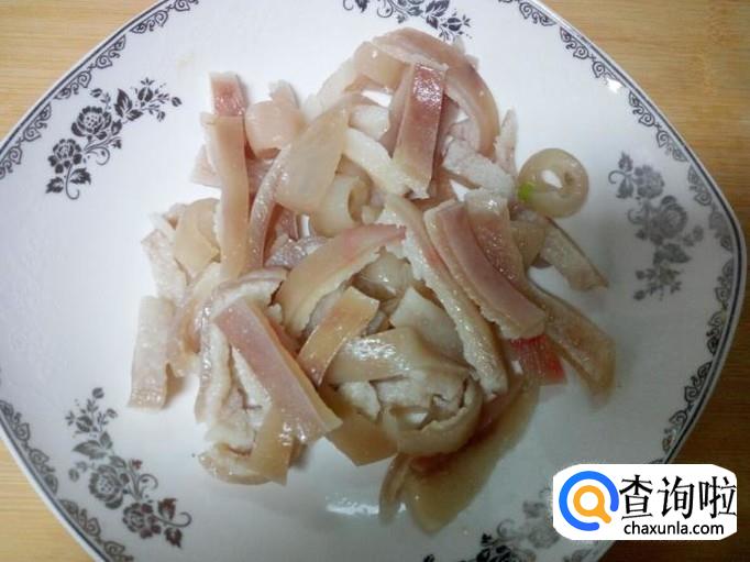煮好的肉皮,晾凉后,切成条。