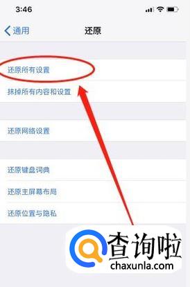 进入“还原”后,点击“还原所有设置"。这样不会删除应用,但会抹除壁纸等数据。