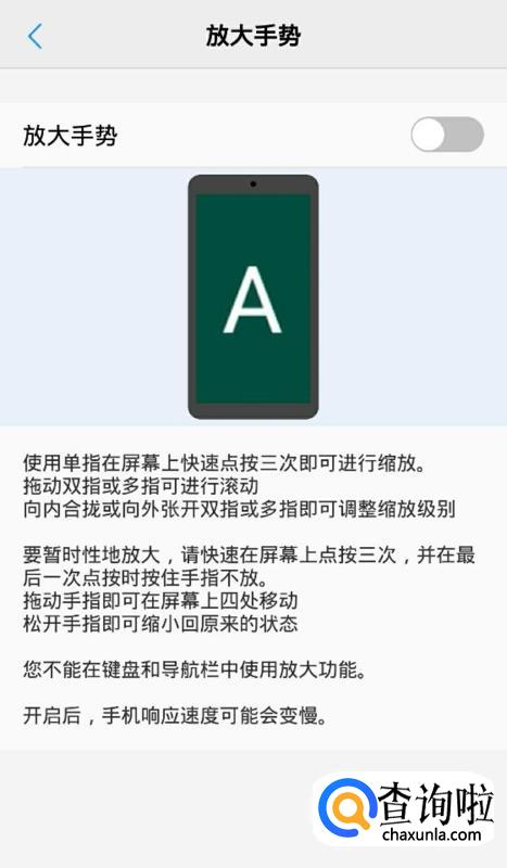 之后我们再选择“放大功能”,我们关闭按钮就可以了。