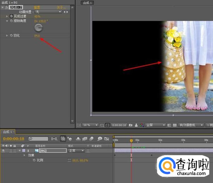 我们将画面上过渡的羽化值设为84,以使画面相对比较柔和些。