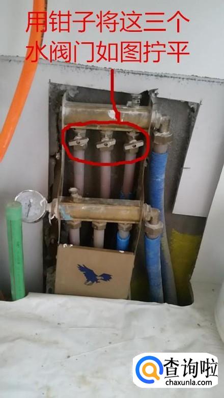 将进水那的三个阀门关上,就是拿钳子拧平