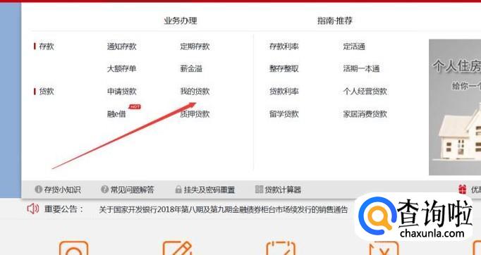 然后登录之后你会发现有一个存款与贷款的选项,然后点击进入,如下图。