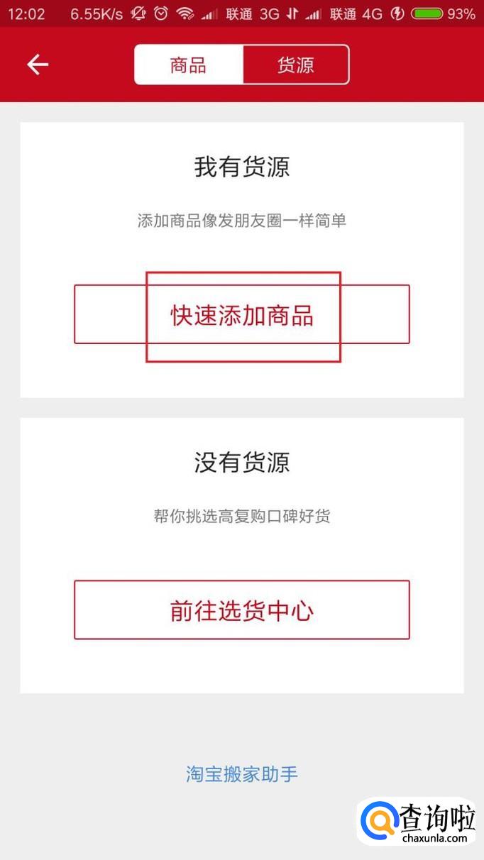 店铺名片信息完成之后,点击页面中的“商品”选项,进入店铺商品添加页面。