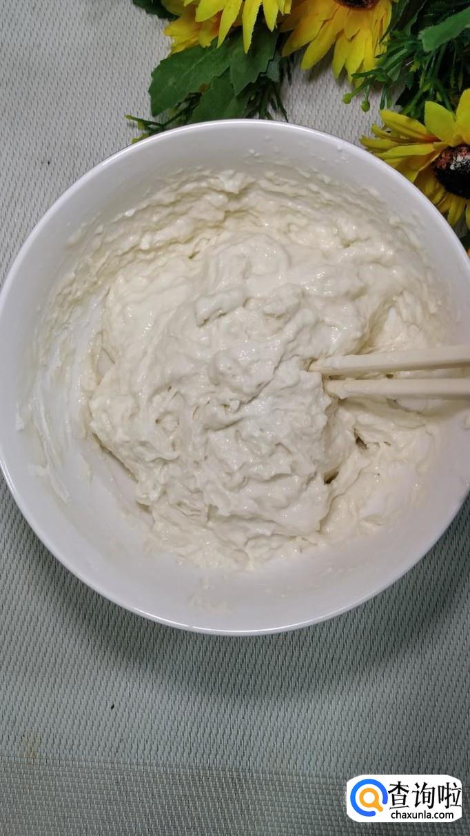 准备适量面粉,加少许清水,打成比较稠的面糊,大约放置20分钟左右,再用筷子使劲搅匀,这样便于面筋的生成。