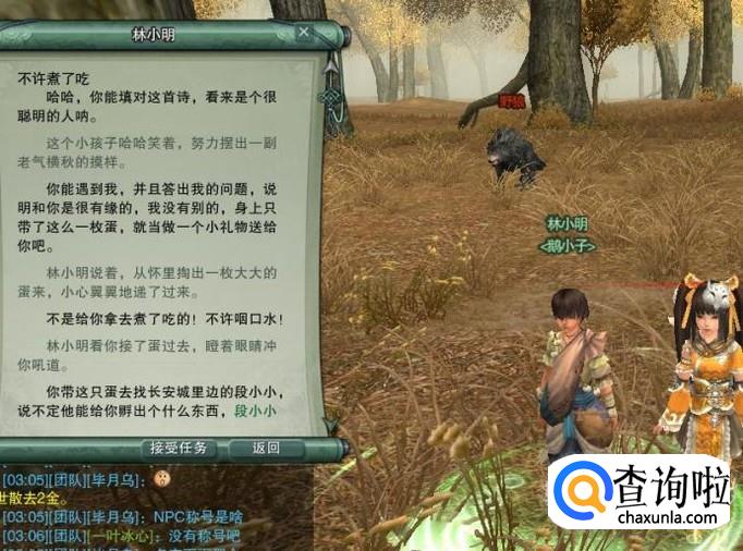 然后再找到另一个发放大白鹅的NPC,与他进行对话,要答对他给出的一句诗。