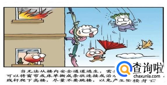 如果火势蔓延到楼层,还没有太大的毁坏,这时你可以用打湿的棉被外套等披在身上,捂住口鼻逃生。