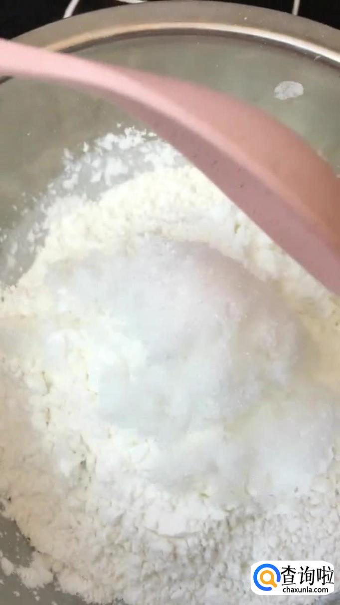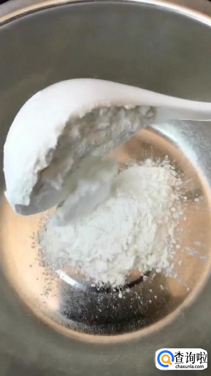 往盘中加入20克的玉米淀粉和50g糯米粉,如下图所示。