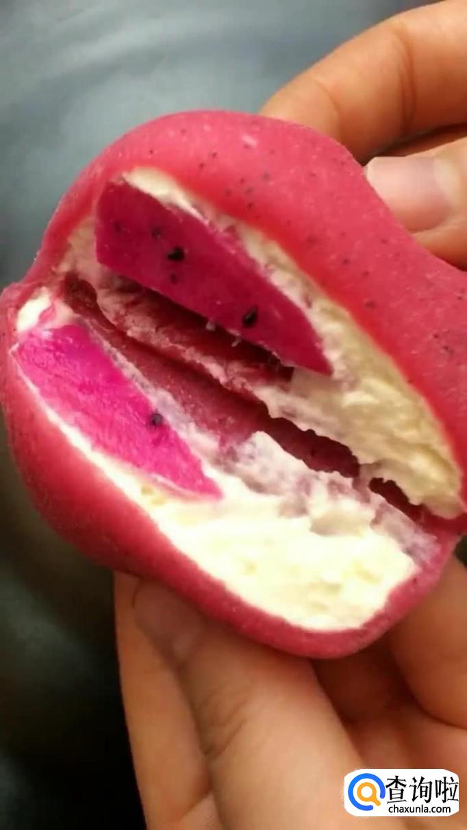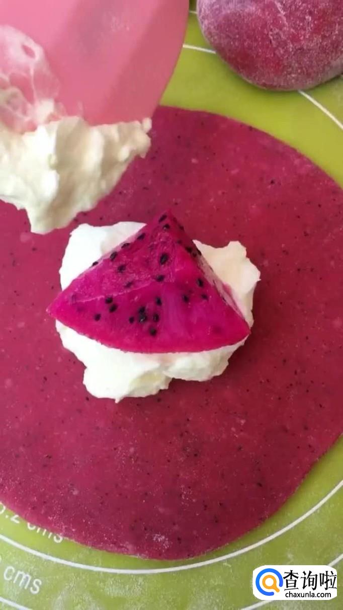 然后包上奶油和火龙果,如下图所示。
