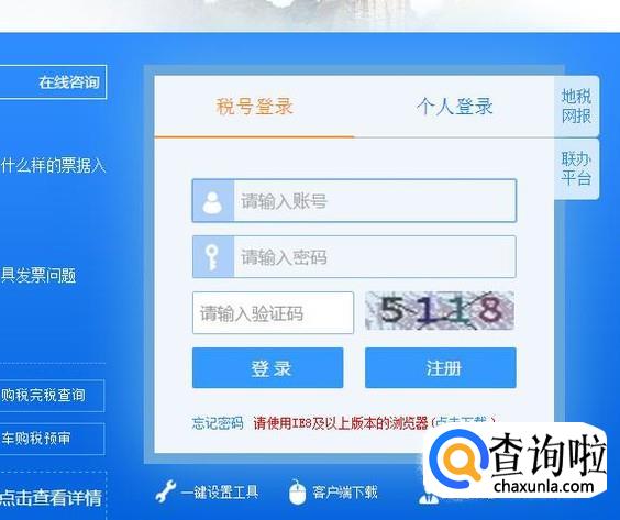进入到国税电子税务局官网后,点击登录,输入账号、密码、验证码。